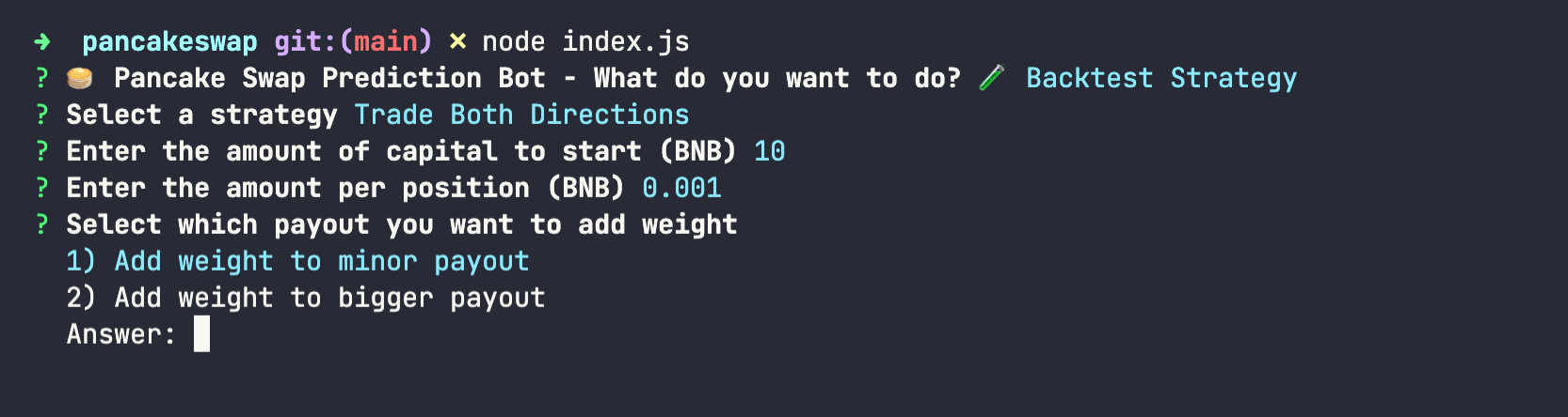 Simulates having two wallets with the same amount of BNB, and you can select to add weight to your bets for the minor or bigger payout.