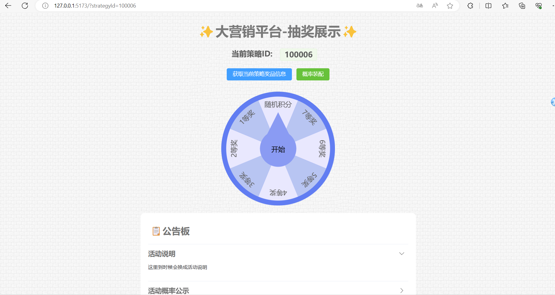 - 在活动界面展示活动信息(抽奖,活动说明,概率声明等)