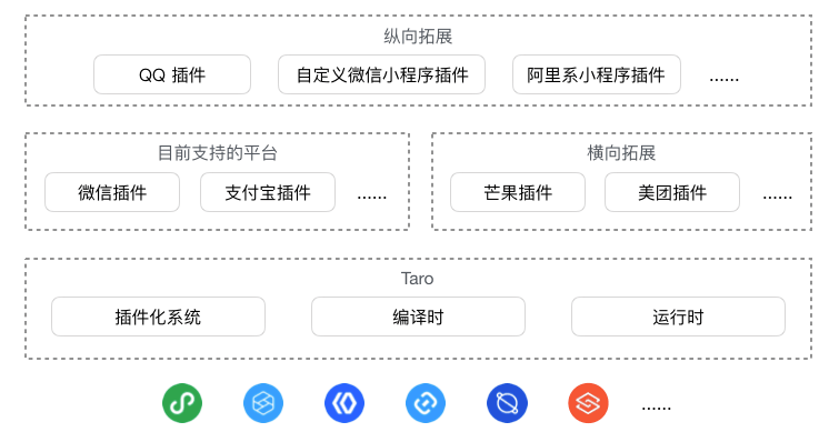 为此我们萌生了打造一个开放式框架的想法。目标是可以通过插件的形式扩展 Taro 的端平台支持能力: