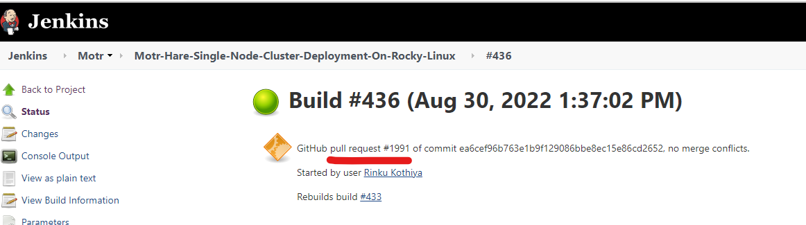 Since hare and motr job had failed, I retriggered it manually, run 436 waiting for results. |
