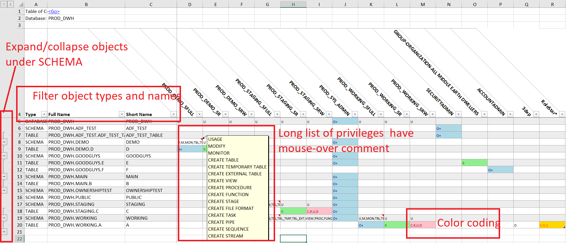 It is also possible to run SFGrantReport in offline mode, without connecting to Snowflake directly.