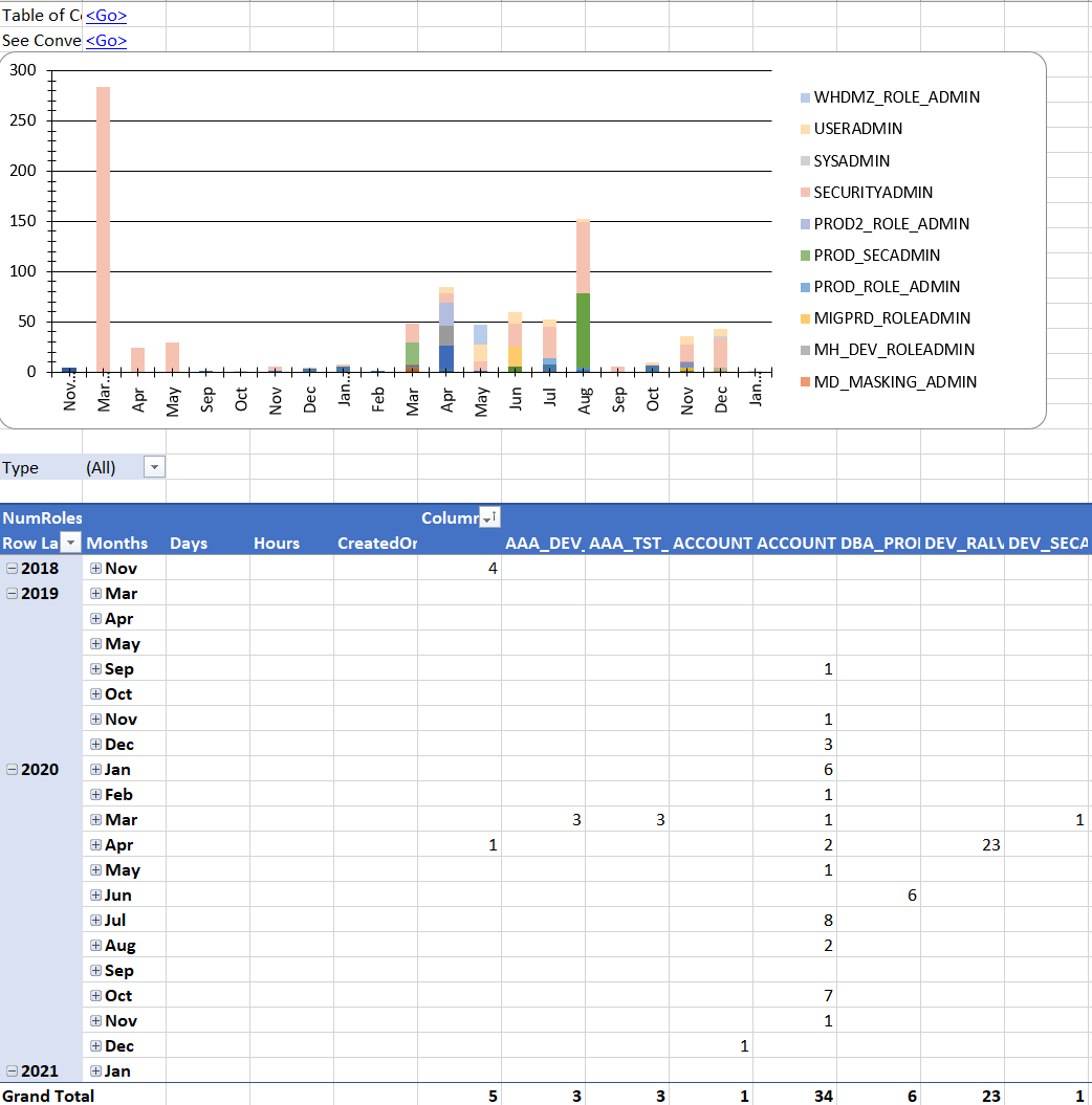 Snowflake Grant Report extracts Roles and Grants data from Snowflake and provides tabular and visual reports on the Role hierarchy and Grant assignments. The tool also provides ability to compare privilege configuration between two different reports, enabling analysis of privilege changes over time in same or even different accounts.
