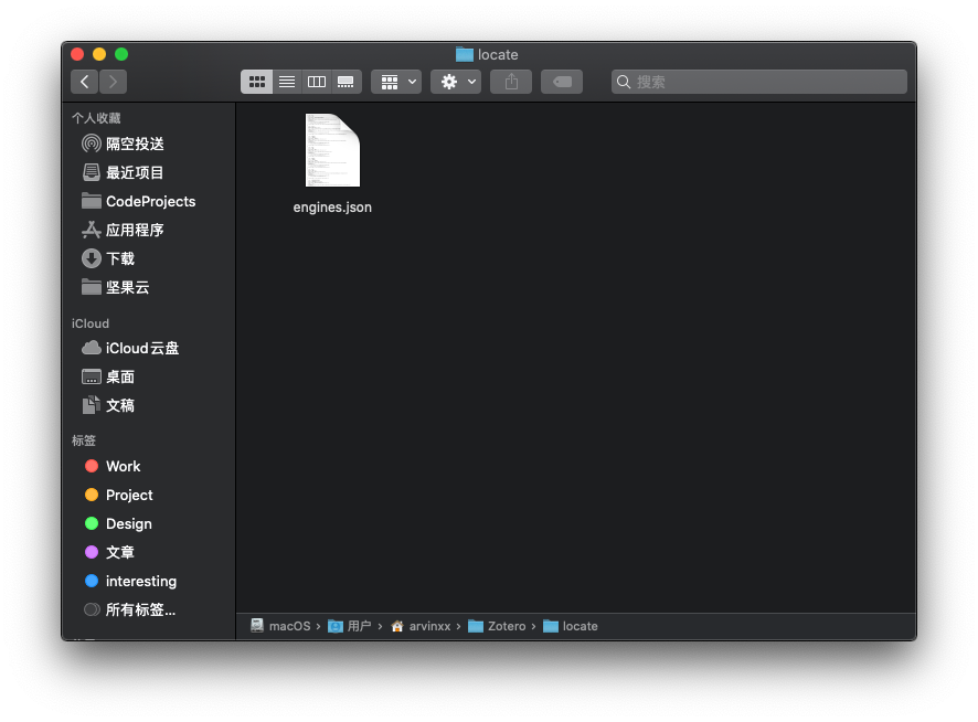 下载完成该引擎文件后,需要将该文件放到 Zotero 库的 locate 目录下面,方可完成安装。