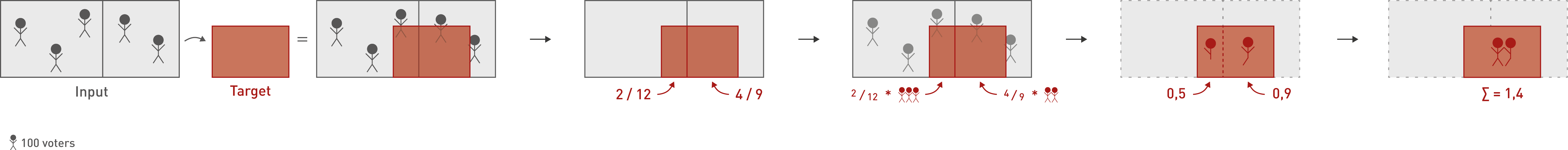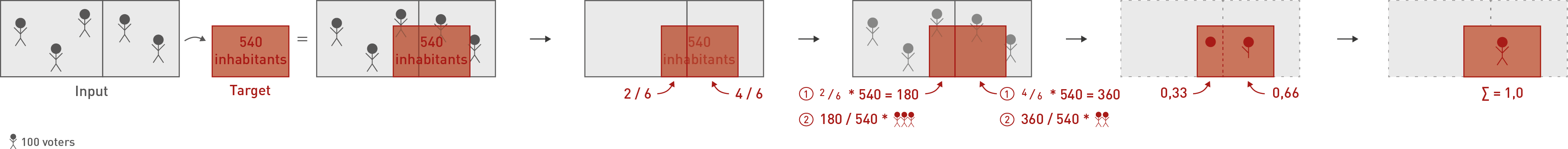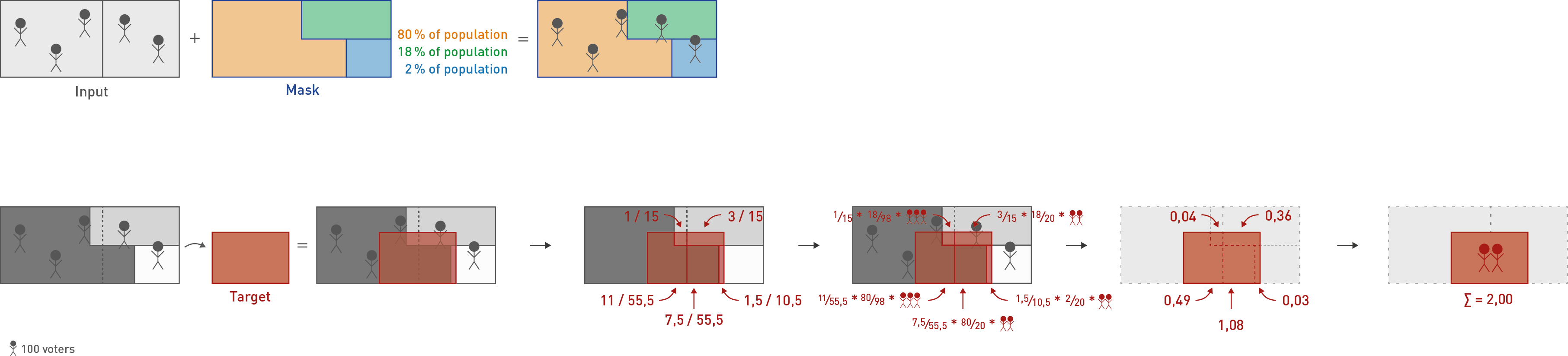 additional control zones with percentage values of an attribute (e.g. share of the population) are used to weight the input attribute