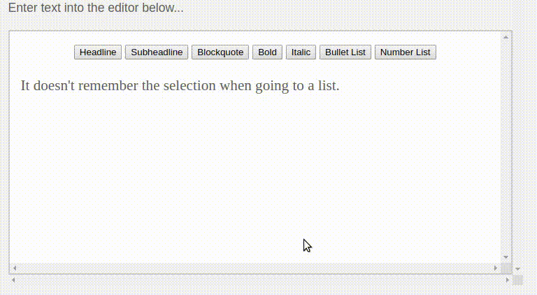 The only edge case is when toggling to a list. There, the sections in the range have to point to ListItem's rather than ListSections. But at the time of toggling, we only have access to the ListSection, and we don't know which ListItem's the new range should point to.