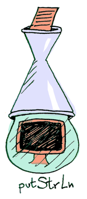 put_line (putStrLn in Haskell) takes a string and prints it: