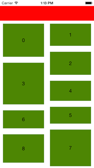 CollectionViewWaterfallLayout is a subclass of UICollectionViewLayout written completely in Swift. This class is based off CHTCollectionViewWaterfallLayout which was written by chiahsien in Objective-C. This class tries to use as many new Swifty things to keep the code updated with current design patterns.