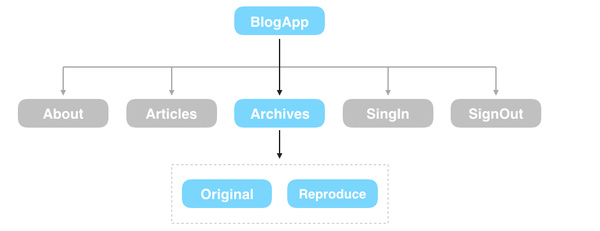 在 Router 组件的 componentWillMount(也就是说最后还是通过Router的history对象来修改) 生命周期方法中调用了 history.listen(listener) 方法。listener 会在上述 matchRoutes 方法执行成功后执行 listener(nextState),nextState 对象每个属性的具体含义已经在上述代码中注释,接下来执行 this.setState(nextState) 就可以实现重新渲染 Router 组件。举个简单的例子,当 URL(准确的说应该是 location.pathname) 为 /archives/posts 时,应用的匹配结果如下图所示:
