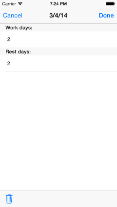 Приложение на iPhone. Календарь с посменным графиком работы.