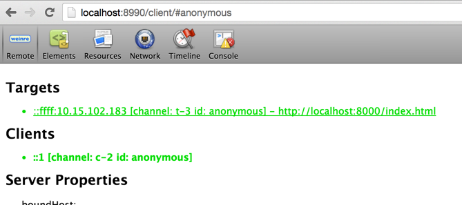然后就可以在 weinre 页面上看到当前绑定的设备了:(端口是 8989)