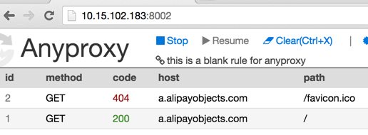同时在 anyproxy 的监控页面也会看到一条请求记录: