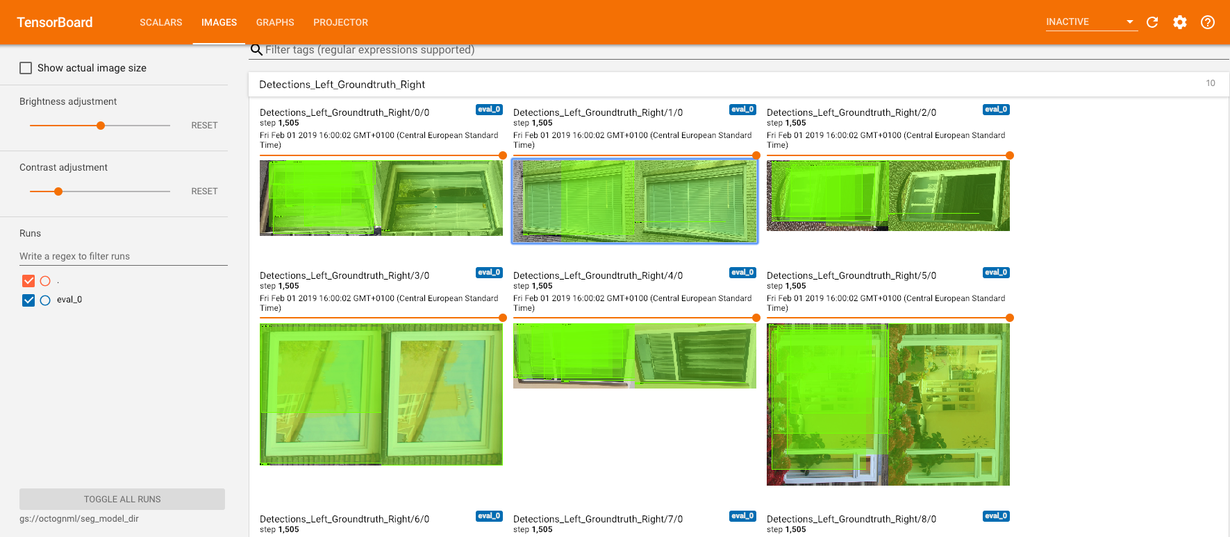 I have successfully created an custom object detection model with this api before. Now I'm trying to train a mask rcnn model but when I look in tensorboard the mask just covers the whole bounding box with no shape whatsoever, like this: