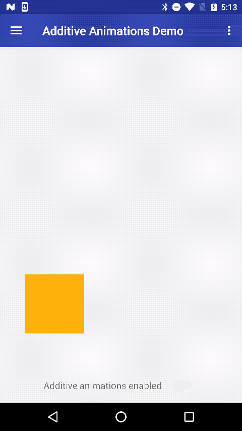 Here is a sample of what additive animations can do for the user experience (note: there seem to be a few dropped frames in the gif which aren't present when running on a device):