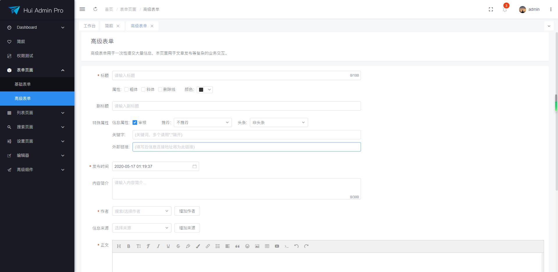 - Hui-Admin-Pro是基于基础版 Hui-Admin-Template 增加更多复杂功能